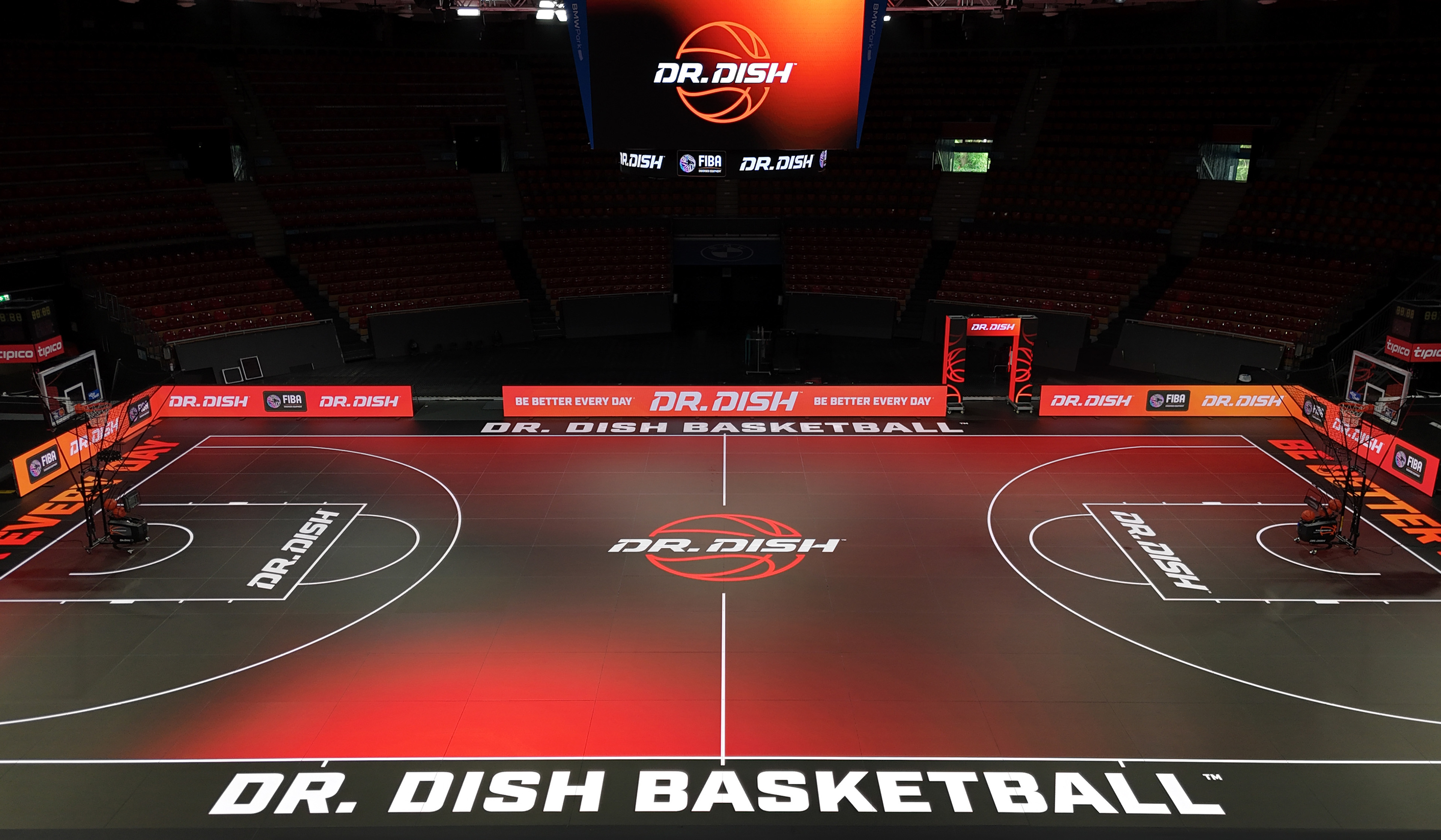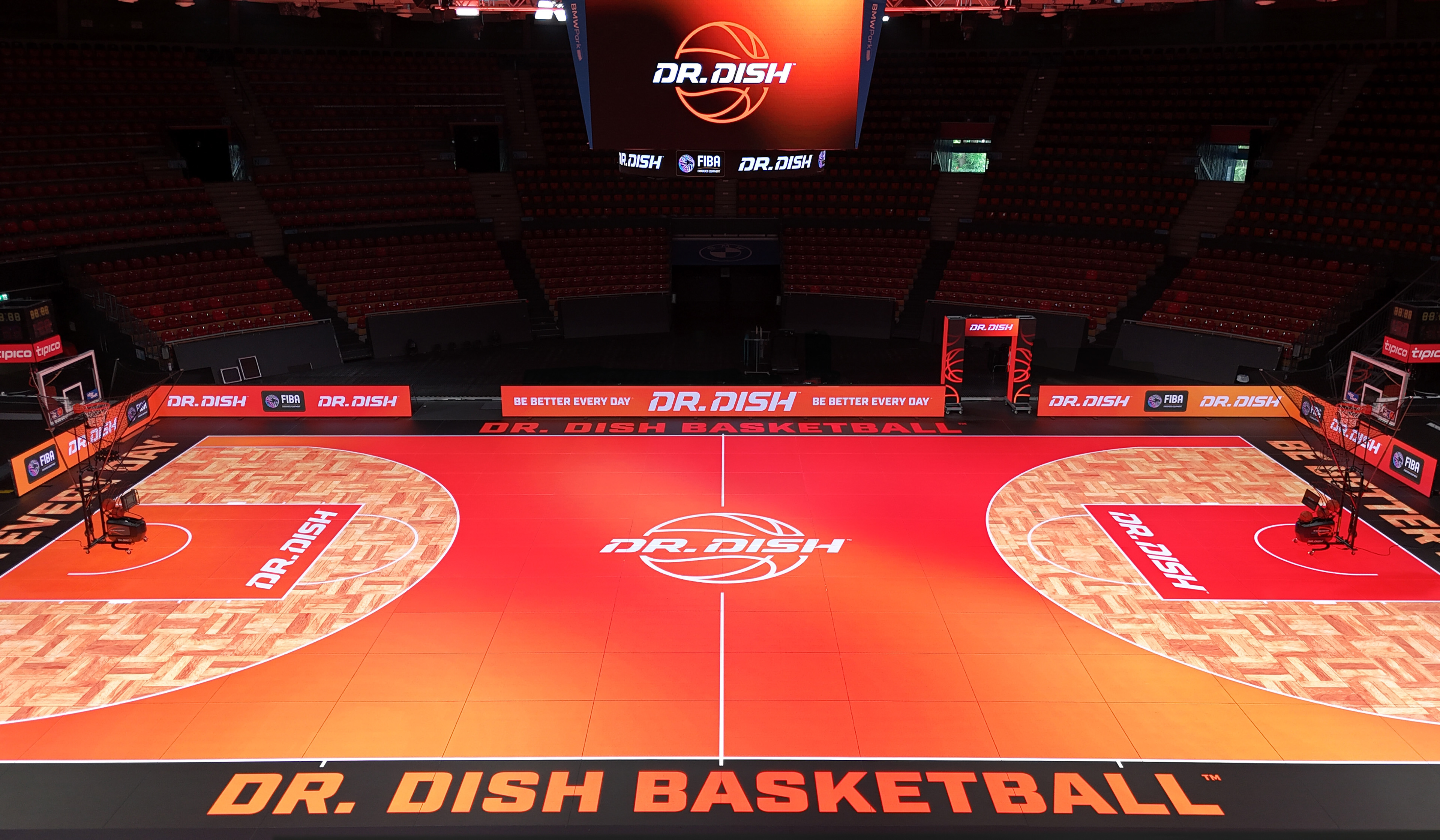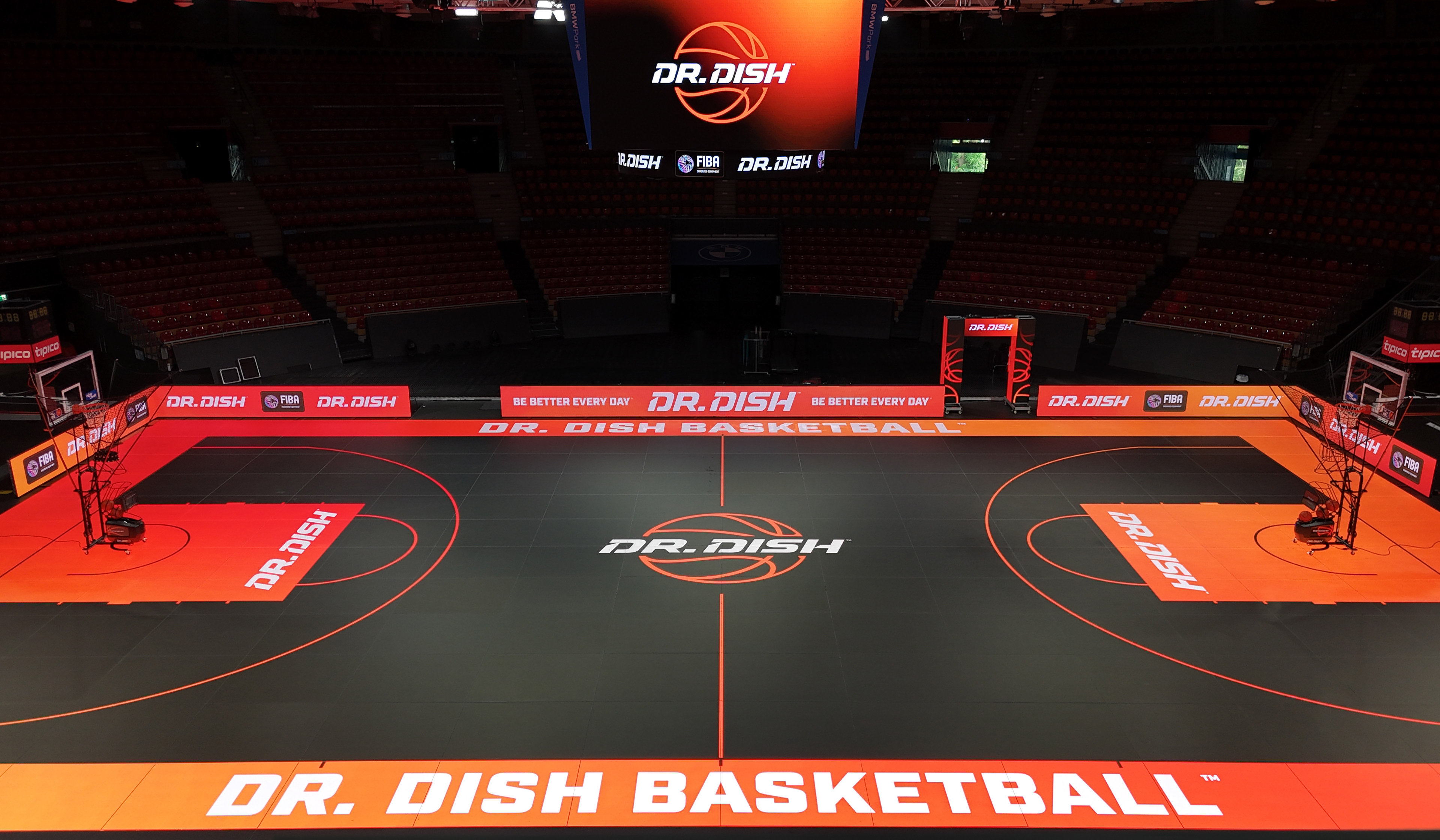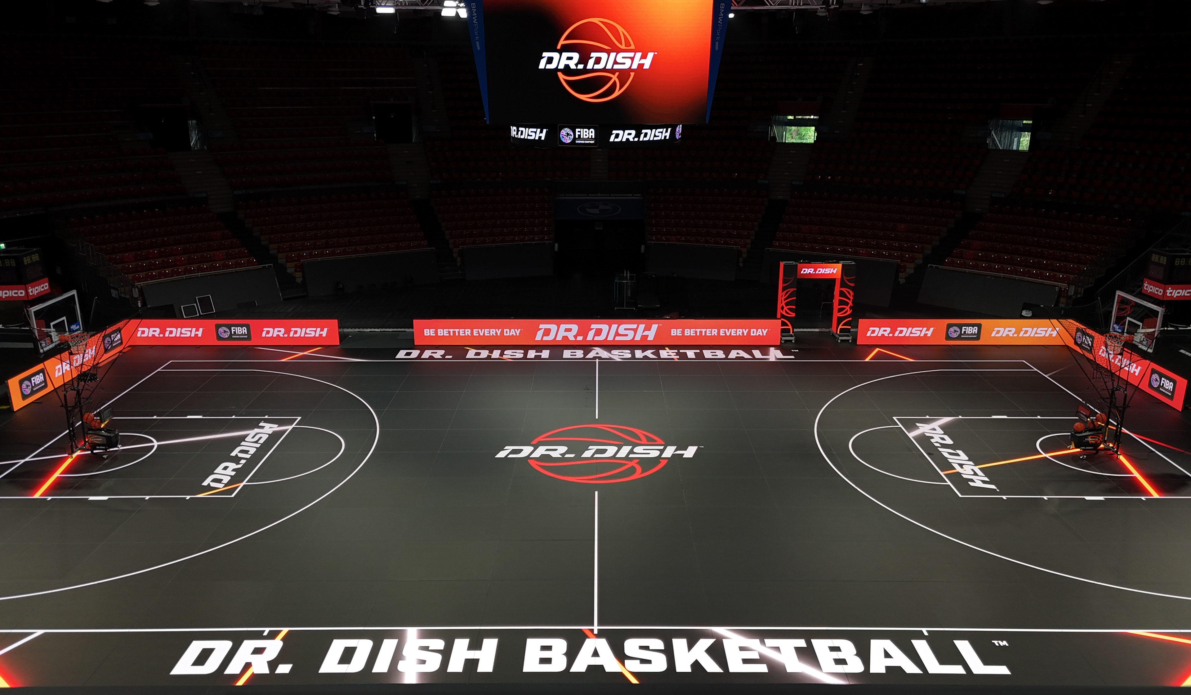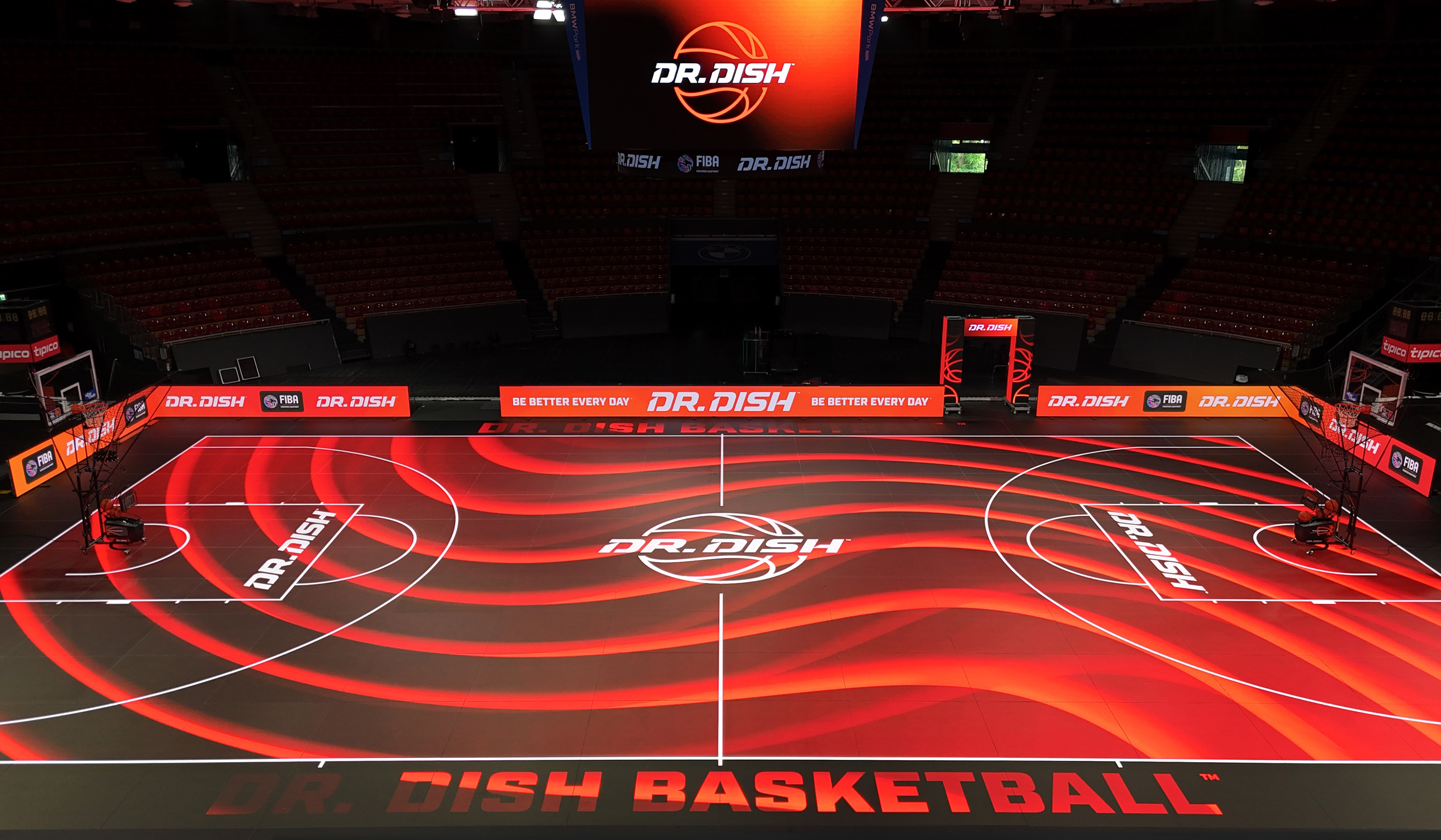 On the international side for Dr. Dish, I had the opportunity to support a filming event at BMW Park in Munich, Germany by creating a wide range of environmental designs. These included dynamic LED animations for the court, sideline boards, upper ring displays, entry arch, and more. Here’s a glimpse at some of the visuals that brought the space to life and a sneak peek video from the event.